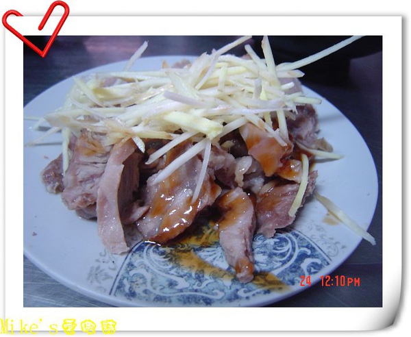 至於小菜,就不能不提到這個嘴邊肉了。以川燙過的豬嘴邊肉塊,待客人點選後,老闆先切成薄片,然後放到大骨湯中燙熱撈起,裝盤後淋上少許醬油膏,再撒上薑絲,一盤越吃越涮嘴的嘴邊肉上桌囉!咬一口肉質軟嫩卻有嚼勁,再配上少許的薑絲,真讓人會忍不住一口接著一口哩。