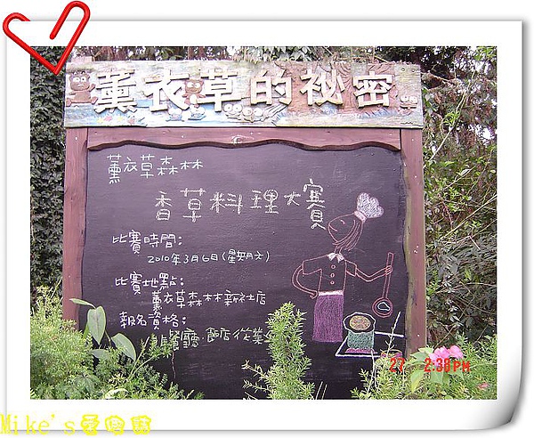早期的薰衣草森林像是一座美麗的景觀餐廳,以薰衣草、迷迭香、百里香等香草為主題的餐點,在菜單上隨處可見,當時的餐飲的確讓人非常懷念,更驚喜的是有幸能夠讓兩個女生其中的慧君來服務,心裡既開心又感動。每次用完餐之餘,就會到園區內栽植的各式香草植物區,仔細欣賞香草的美麗姿態與呼吸清新的芬芳,因為我特別喜歡薰衣草,所以每次來,都會想要捕捉薰衣草盛開的畫面,同時感受那紫色舒壓的芳香,可惜台灣的氣候過於炎熱,薰衣草只有在二、三月時才能見到盛開的景況。