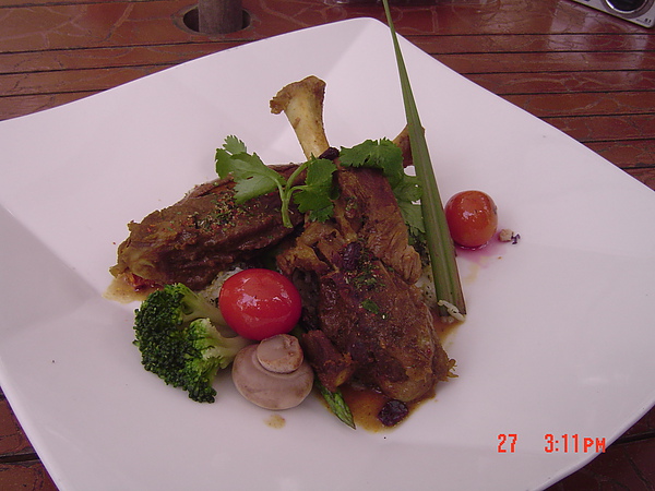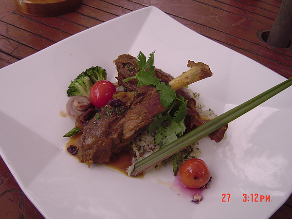而主廚的創意料理,平心而論只能算是一般的水準,主菜薰衣草南洋咖哩燉豬小膝腿,吃起來腿肉軟嫩彈牙,但咖哩的香氣並不突出,薰衣草氣味的點綴也沒有達到加分的效果,甚是可惜;倒是前菜的香草麵包、培根野菇蔬菜湯和田園香草油醋燻鴨沙拉還令人驚喜些,吃起來清新爽口,香草的芬芳滿溢整個口鼻之間,餐後的冰薰衣草花茶和薰衣草手工餅乾,就讓人有甜蜜浪漫的感覺,這才稍稍安撫了焦躁不安的心。